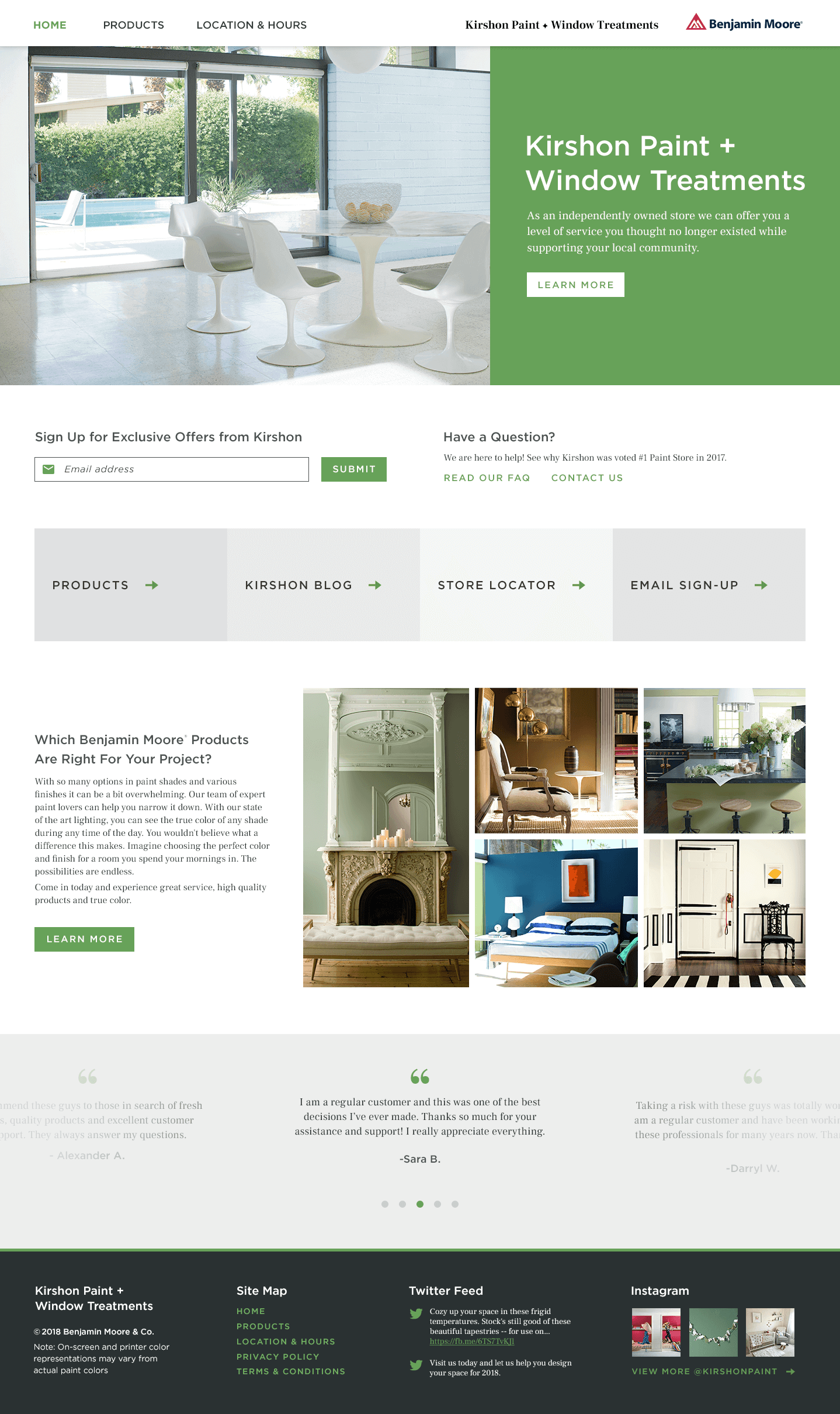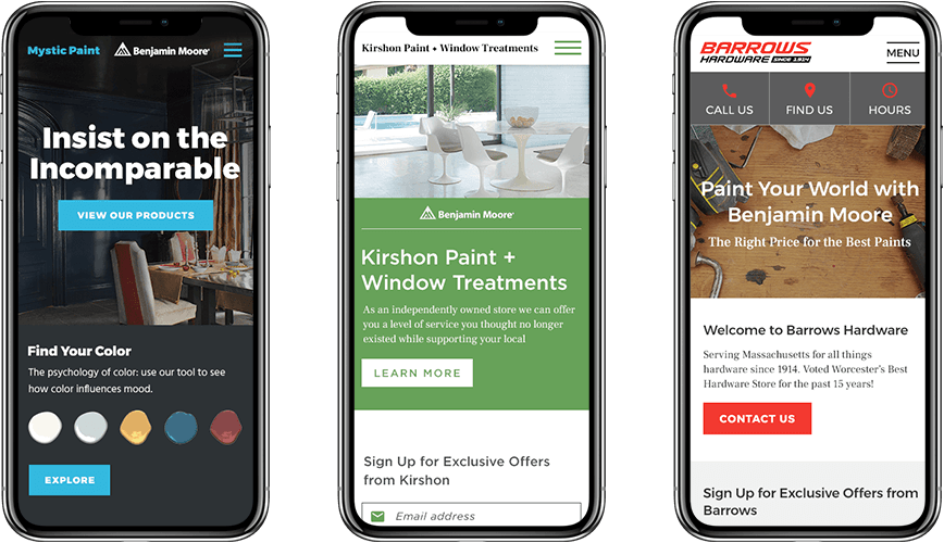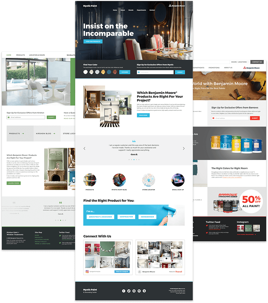 BenjaminMoore.com receives nearly 1,000,000 visitors each month. Almost half of the visitors want to connect to a local retail store’s website. The brand wanted to give each retail store its own local Web presence and a way to easily update the site efficiently, while maintaining the integrity of the 125-year-old Benjamin Moore brand.