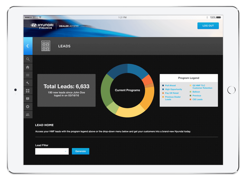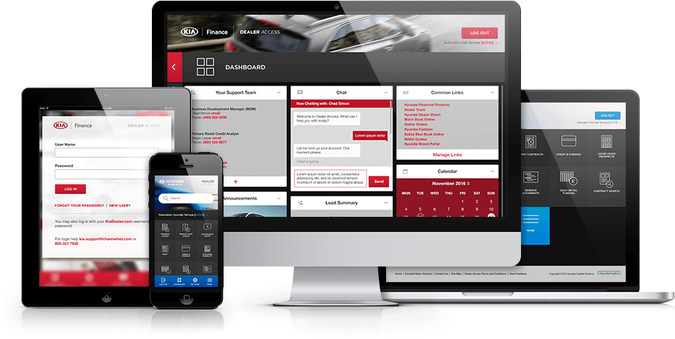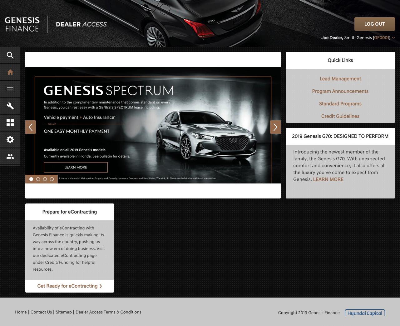 The Dealer Portal is HCA’s secure cloud-based one-stop-shop online resource to serve all of their dealers—825 Hyundai dealerships and 772 Kia dealerships (Genesis was added in the last year). The self-service portal for HCA dealers was designed after an extensive in-market needs analysis and user-role persona-driven methodology. The portal provides incentives, offers, electronic lease funding notices, reserve statements, leads and more. The fully responsive channel-integrated solution created significant efficiencies for the business generated measurable improvements in the effectiveness of dealer operational processes, from reporting to incentives and financial reconciliations.