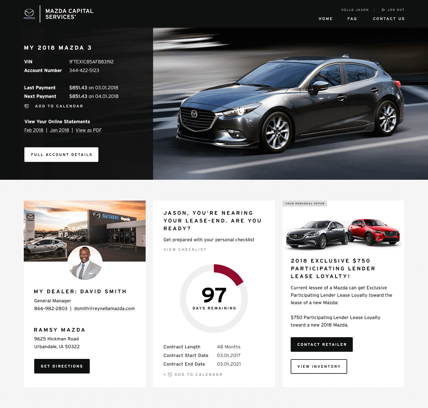 A productized strategic collaboration with a who’s who of automotive brands, including Jaguar, Land Rover, Lexus, Mercedes Benz, Hyundai, Kia, Mazda and Subaru, to implement the industry-leading full lifecycle digital customer management program. The program replaces and fully digitizes the time-worn traditional direct mail -based approach to customer loyalty communication, thus improving effectiveness and reducing cost.